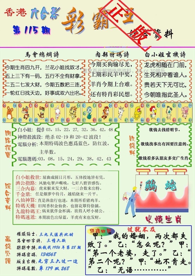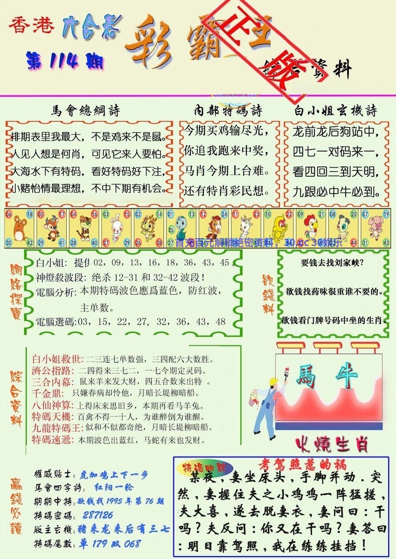 112期:单【牛羊蛇猪】双【鼠马猴】开:龙02准