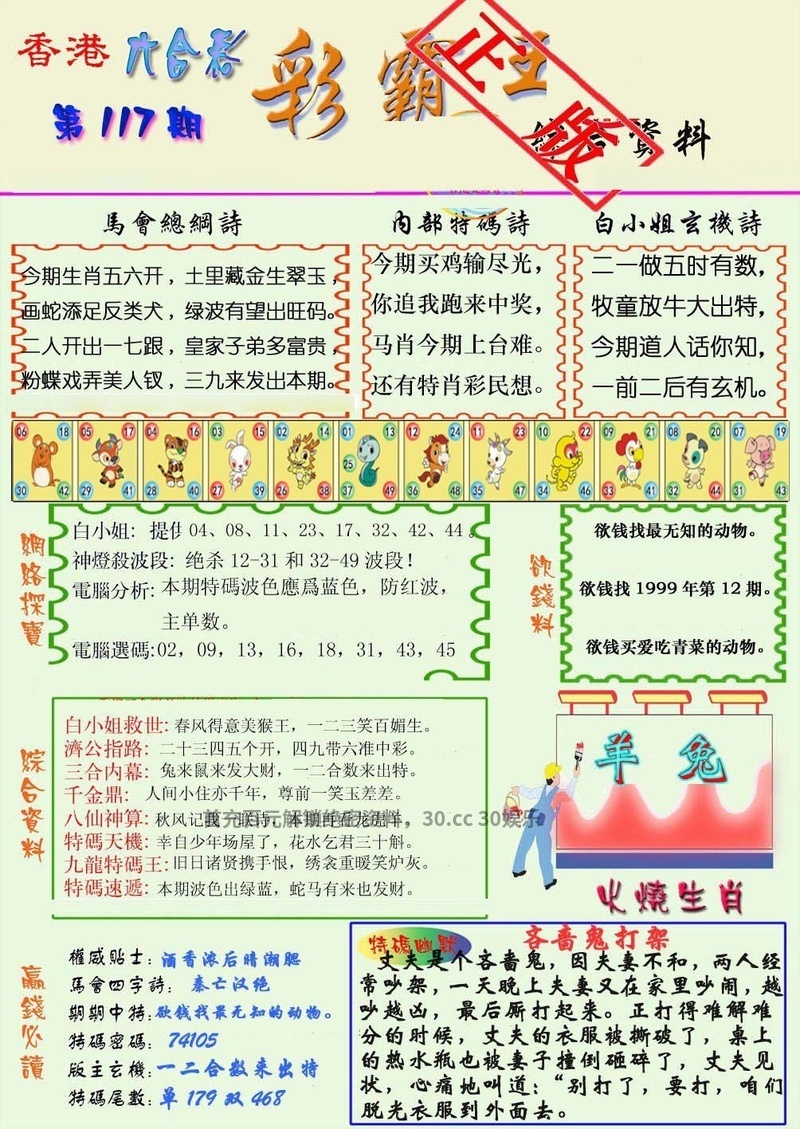 117期:单【牛蛇羊鸡】双【猴狗龙马】开:虎04